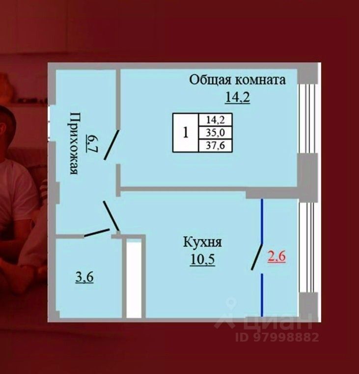 Общая площадь37,6 м²