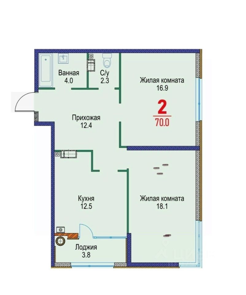 2-комнатная квартира 70 м²
