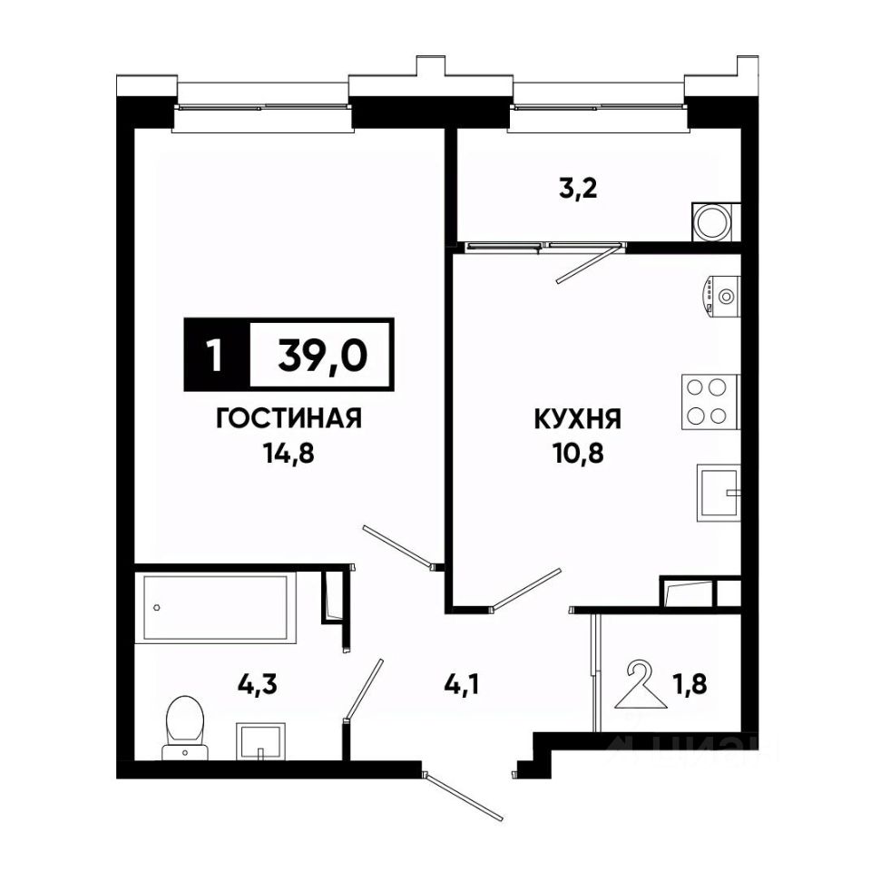 Общая площадь39 м²