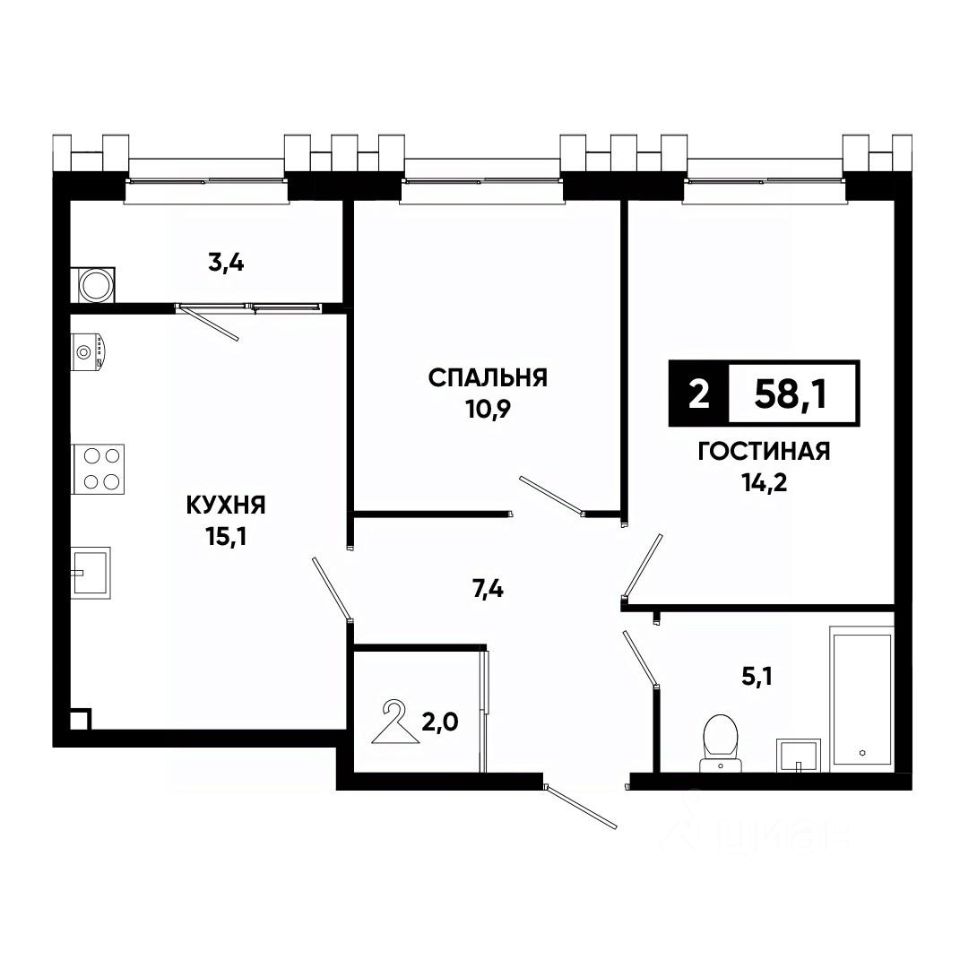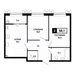 Общая площадь58,1 м²