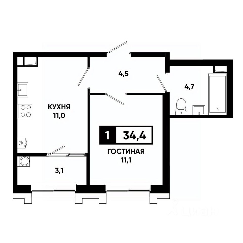 Общая площадь34,4 м²