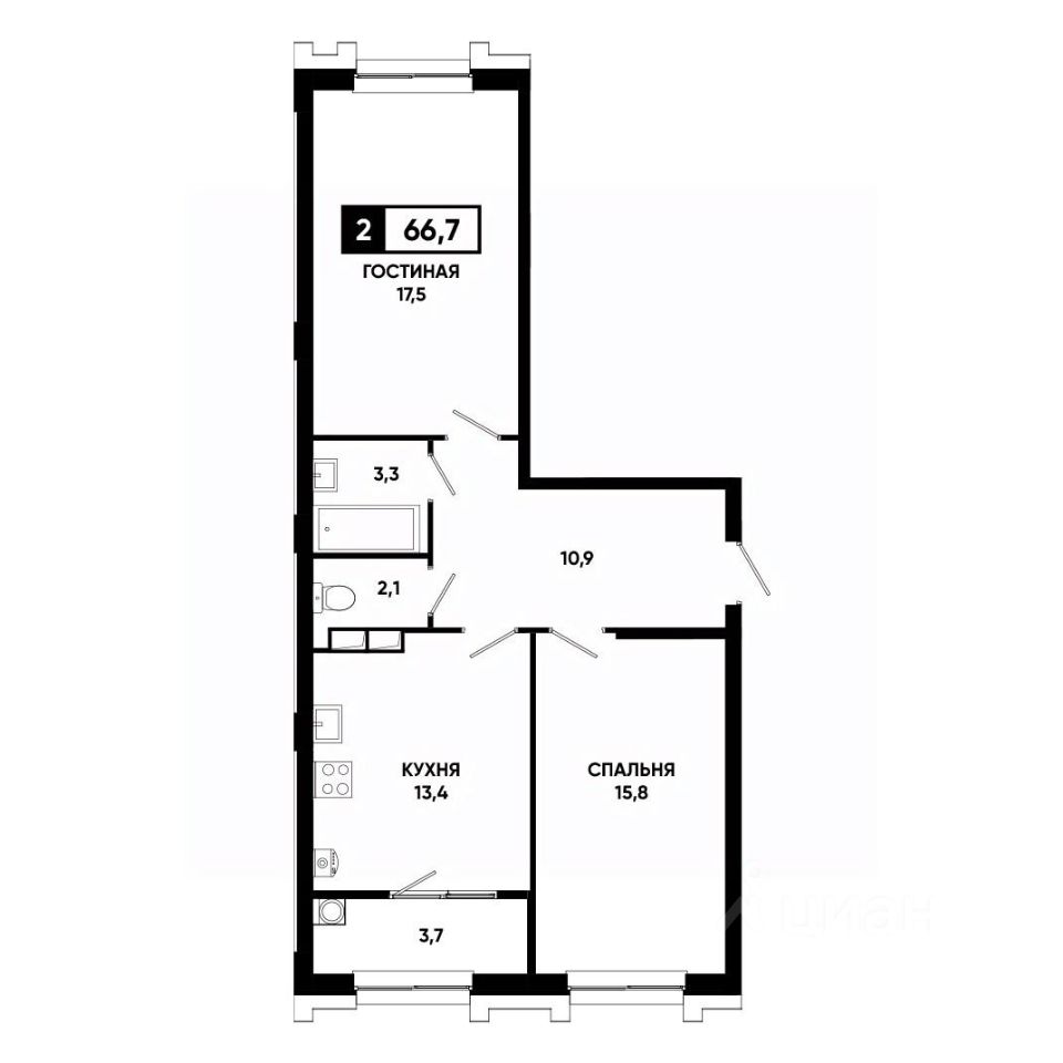 Общая площадь66,7 м²