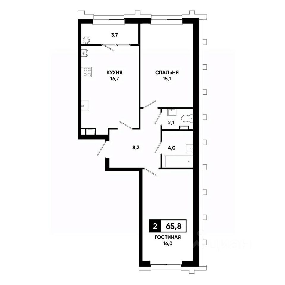Общая площадь65,8 м²