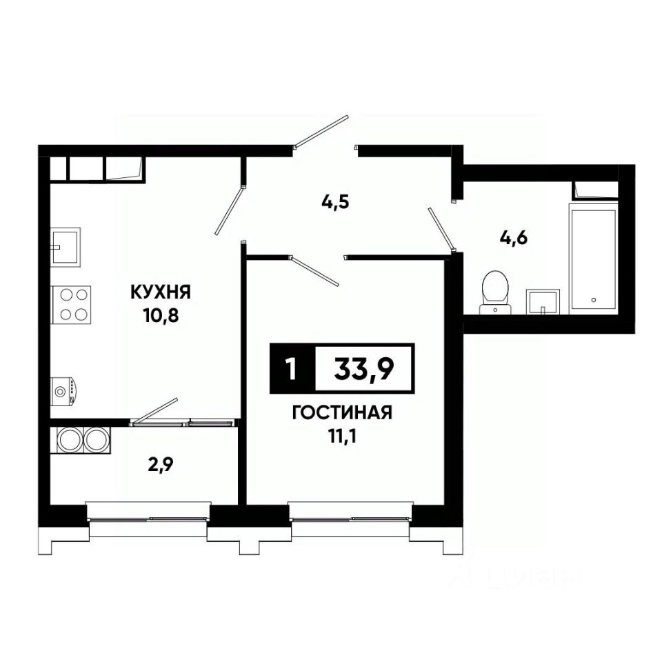 Общая площадь33,9 м²