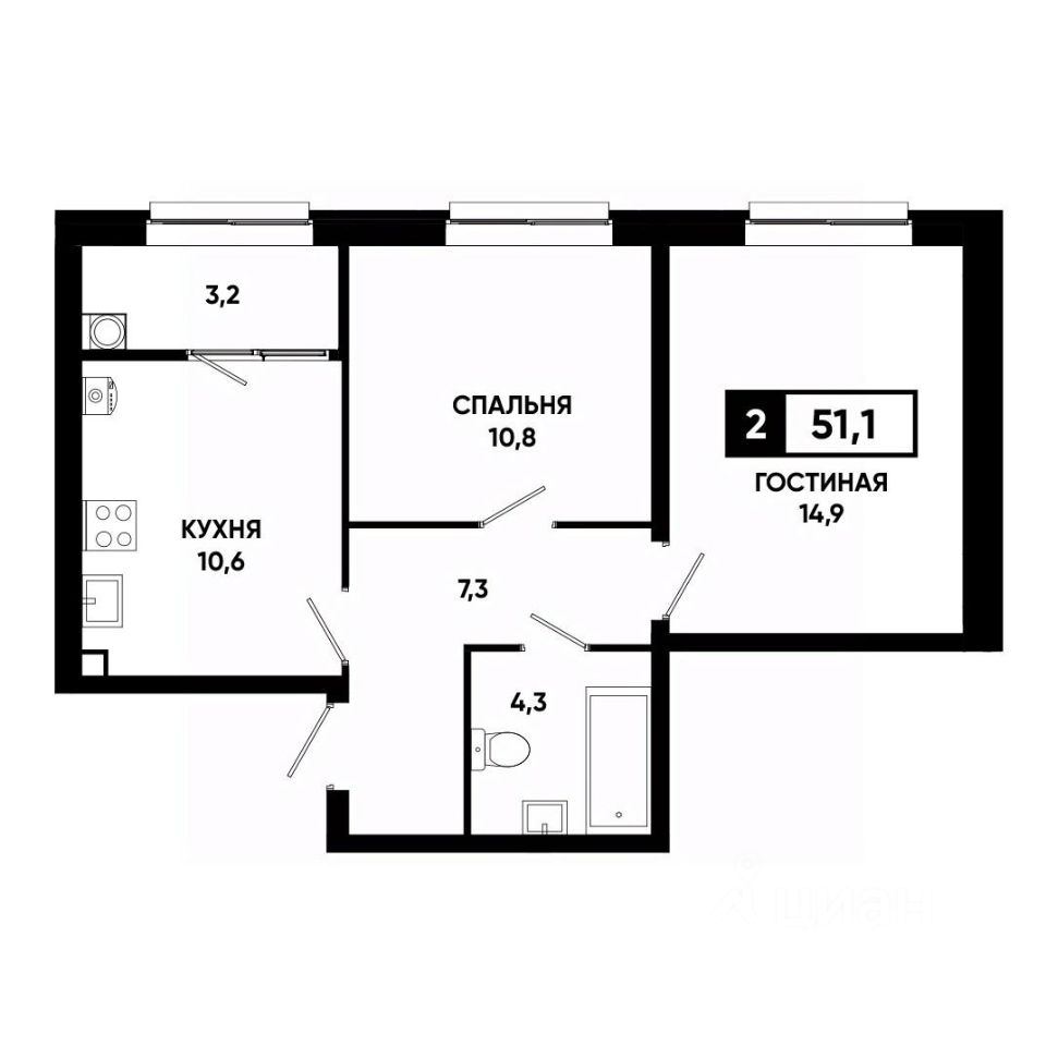 Общая площадь51,2 м²
