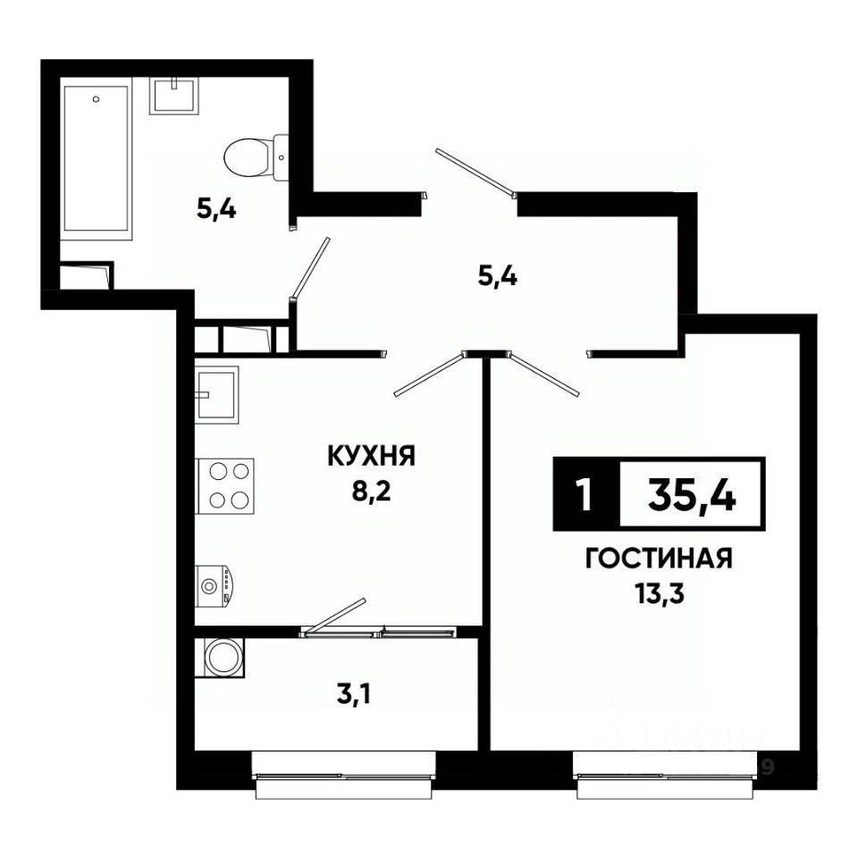 Общая площадь35,4 м²