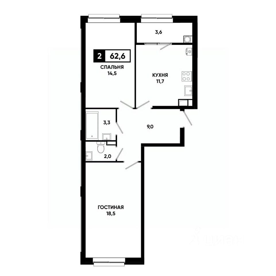 Общая площадь62,6 м²