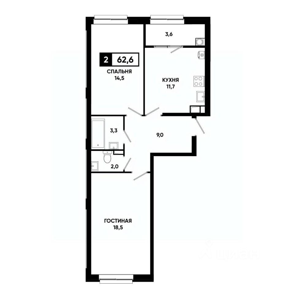 Общая площадь62,6 м²