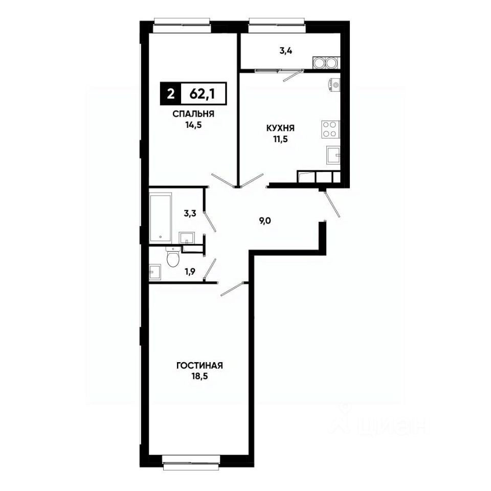 Общая площадь62,1 м²