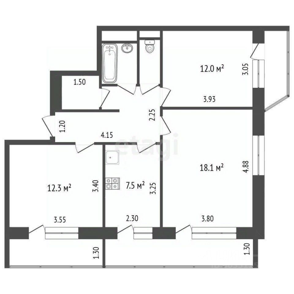 Квартира видовая с двумя лоджиями и балконом.