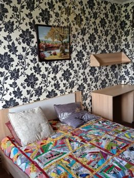 Отделка: Натяжные потолки, ламинат в комнатах, плитка на кухне и в лоджии.