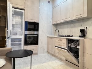 В квартире установлена сплитсистема, встроенный шкаф, встроенная кухня со всей необходимой техникой, стильная столовая группа, уютный раскладной диван, кровать с мягким изголовьем и подъемным механизмом.