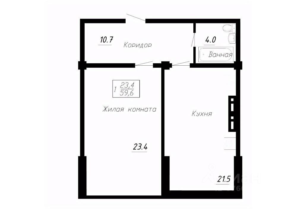 Продается 1-комн. квартира, 59,6 м²