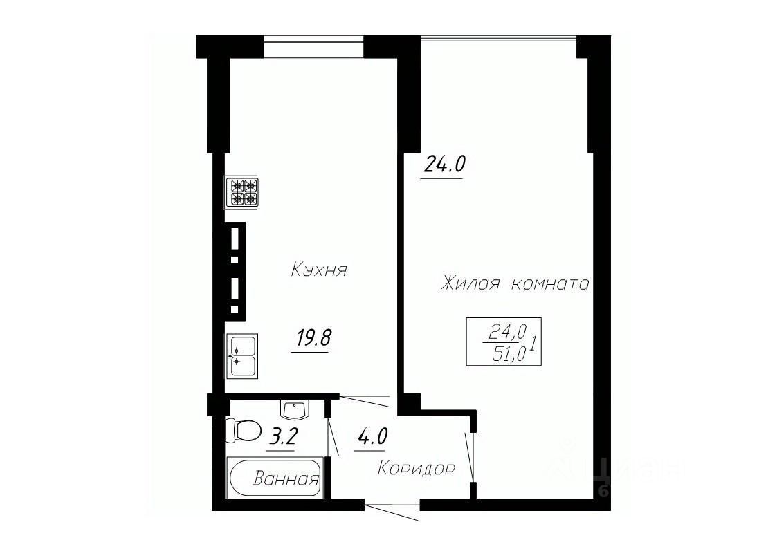 Общая площадь51 м²