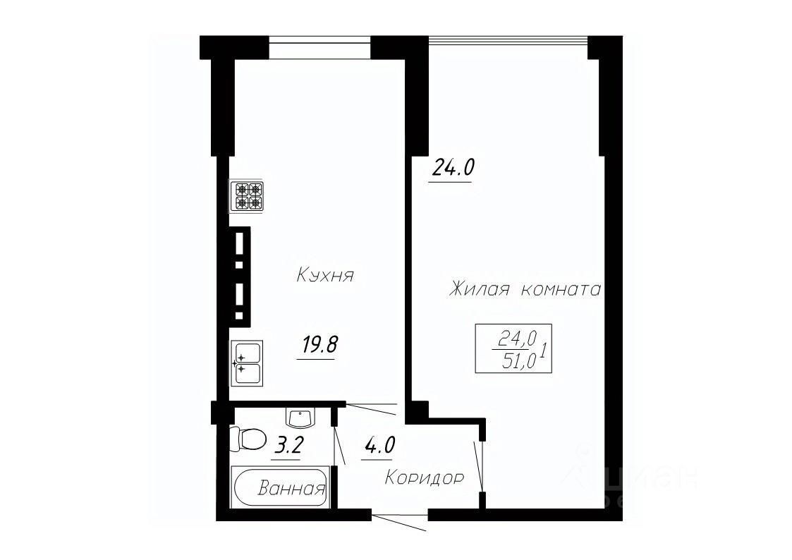 Продается 1-комн. квартира, 51 м²