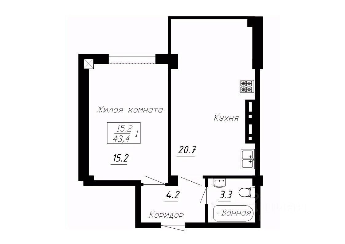 Общая площадь43,4 м²