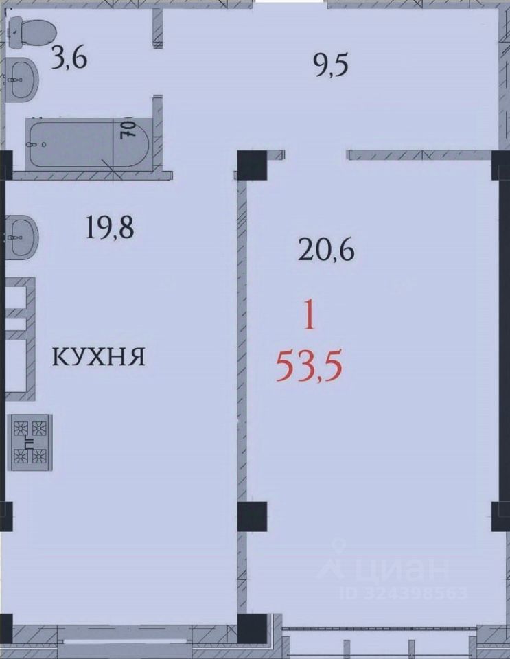 Продается 1-комн. квартира, 53,5 м²