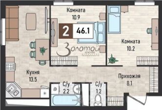 В новом развивающемся районе в поселке Иноземцево продается 2 комнатная квартира 46,1 кв.м, изол.комнаты, разд.санузел, без отделки.