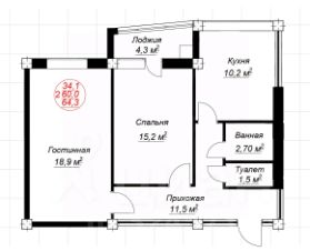 ЗВОНИТЕ СЕЙЧАС ,ОРГАНИЗУЕМ БЫСТРЫЙ ПРОСМОТР, Ессентуки 2 комн., общ. пл. 64 кв.м., жил.пл. 34 кв.м., комнаты 18.9/15.2, кухня 10 кв.м., окна улица/двор, санузел раздельный, застекленный балкон