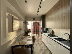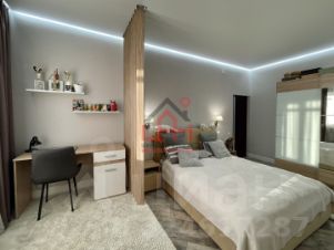 В квартире две спальные комнаты, одна спальня - с зонированием для рабочей зоны. Просторная кухня со встроенной техникой совмещена с большой застеклённой лоджией с панорамными окнами и зоной отдыха.