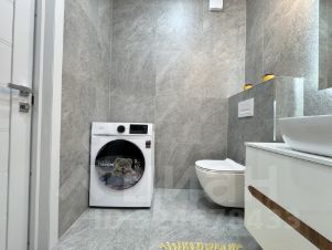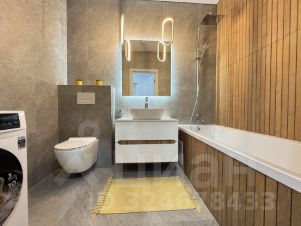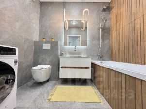 Санузел совмещенный, просторный. Унитаз инсталляция, стиральная машинка установлена и подключена, ванна со стеклом, зеркало с подсветкой.