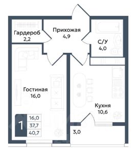 Общая площадь40,7 м²