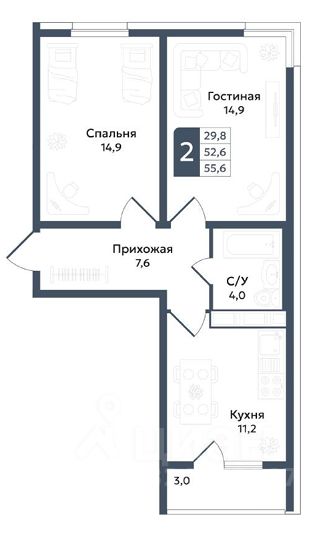 Общая площадь55,6 м²