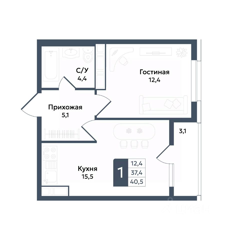Общая площадь40,5 м²