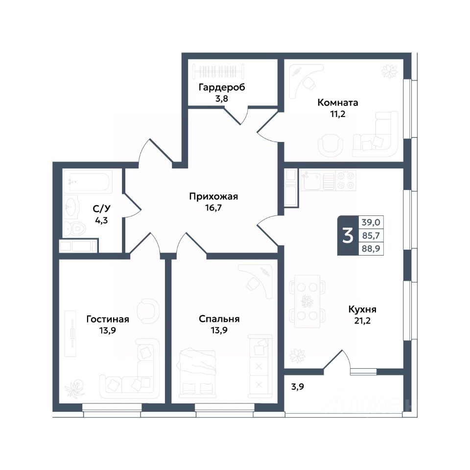 • 259 квартир с функциональными планировками, начиная от 39 м²