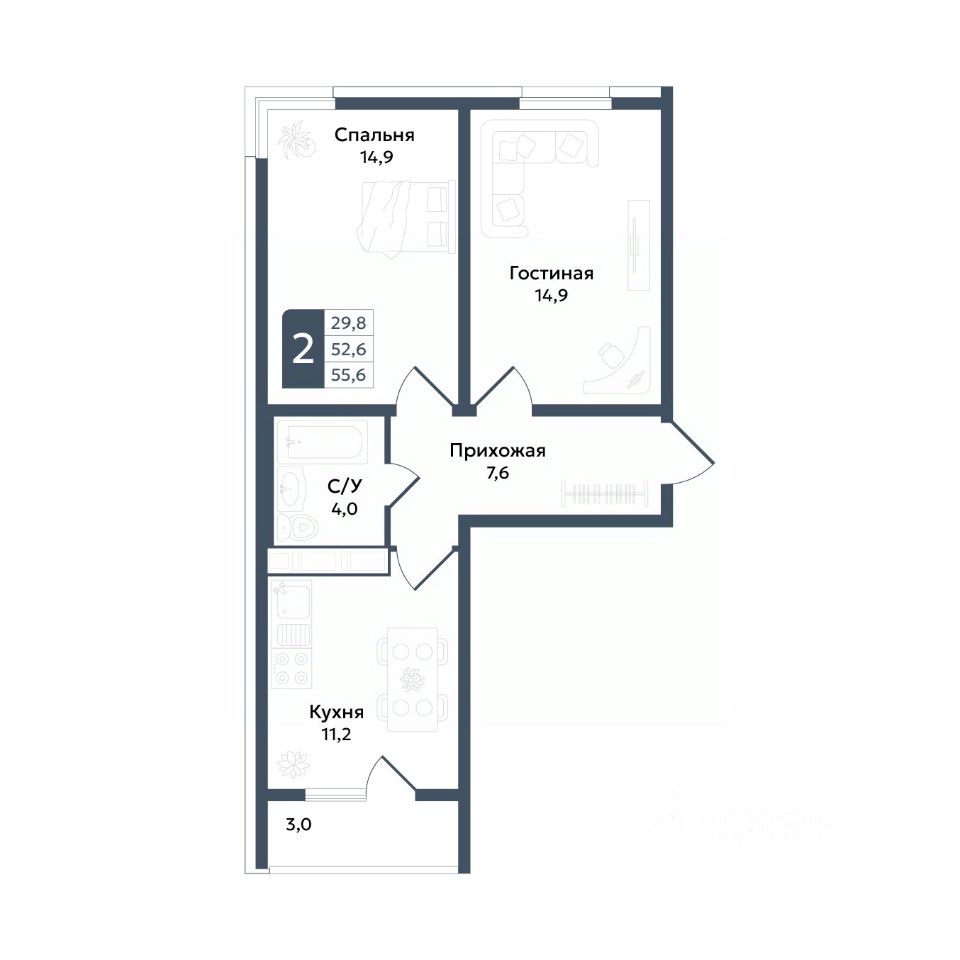 Общая площадь55,6 м²