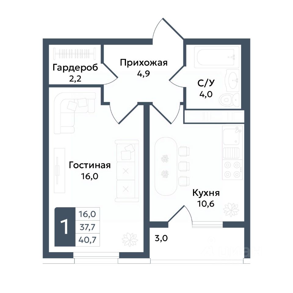 • 259 квартир с функциональными планировками, начиная от 39 м²