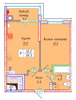 Общая площадь39,3 м²