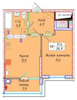Общая площадь38,3 м²