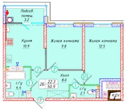 Общая площадь50,9 м²