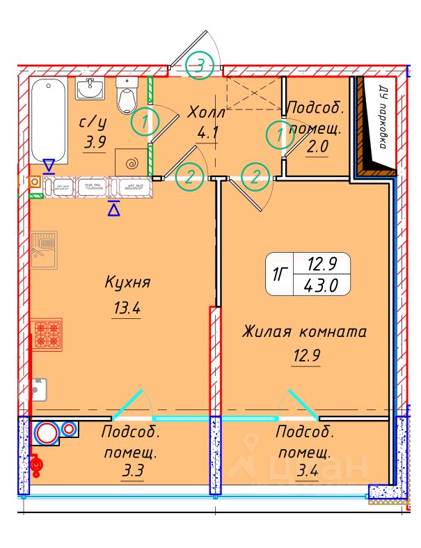 Общая площадь43 м²