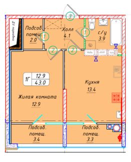 Общая площадь43 м²