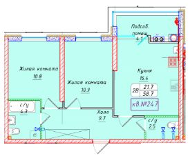 Общая площадь58,7 м²