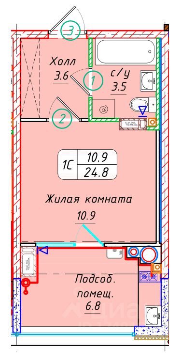 Общая площадь24,8 м²