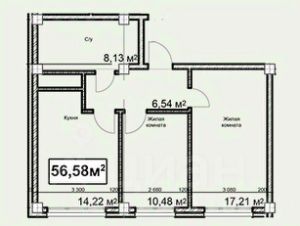 Общая площадь56,58 м²