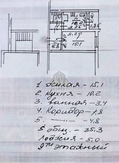 Общая площадь 36 кв.м., кухня 10,2 кв.м., санузел совмещенный.