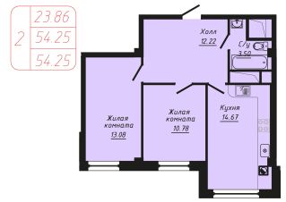 Продаётся 2-комнатная квартира в строящемся доме (Секции 6-10), срок сдачи: II-кв. 2028, общей площадью 54.25 кв.м., на 7 этаже.