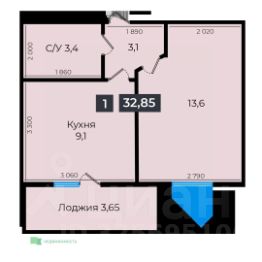 Продается 1-комн. квартира, 32,95 м²