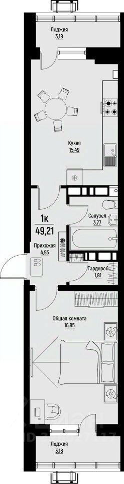 Общая площадь49,21 м²