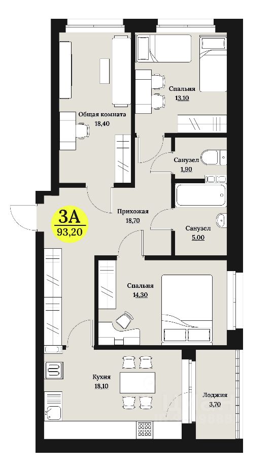 Общая площадь93,2 м²