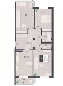 Продается шикарная 3 к.кВ. Общей площадью 91,7 кв.м. на 3 этаже !!! КЛАДОВАЯ В ПОДАРОК !!!!