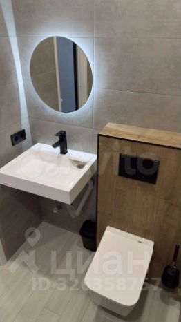 6. В санузле уставлена ванна, инсталляция и подвесная раковина с нишей для стиральной машины.