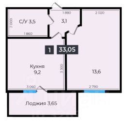 Общая площадь33,05 м²