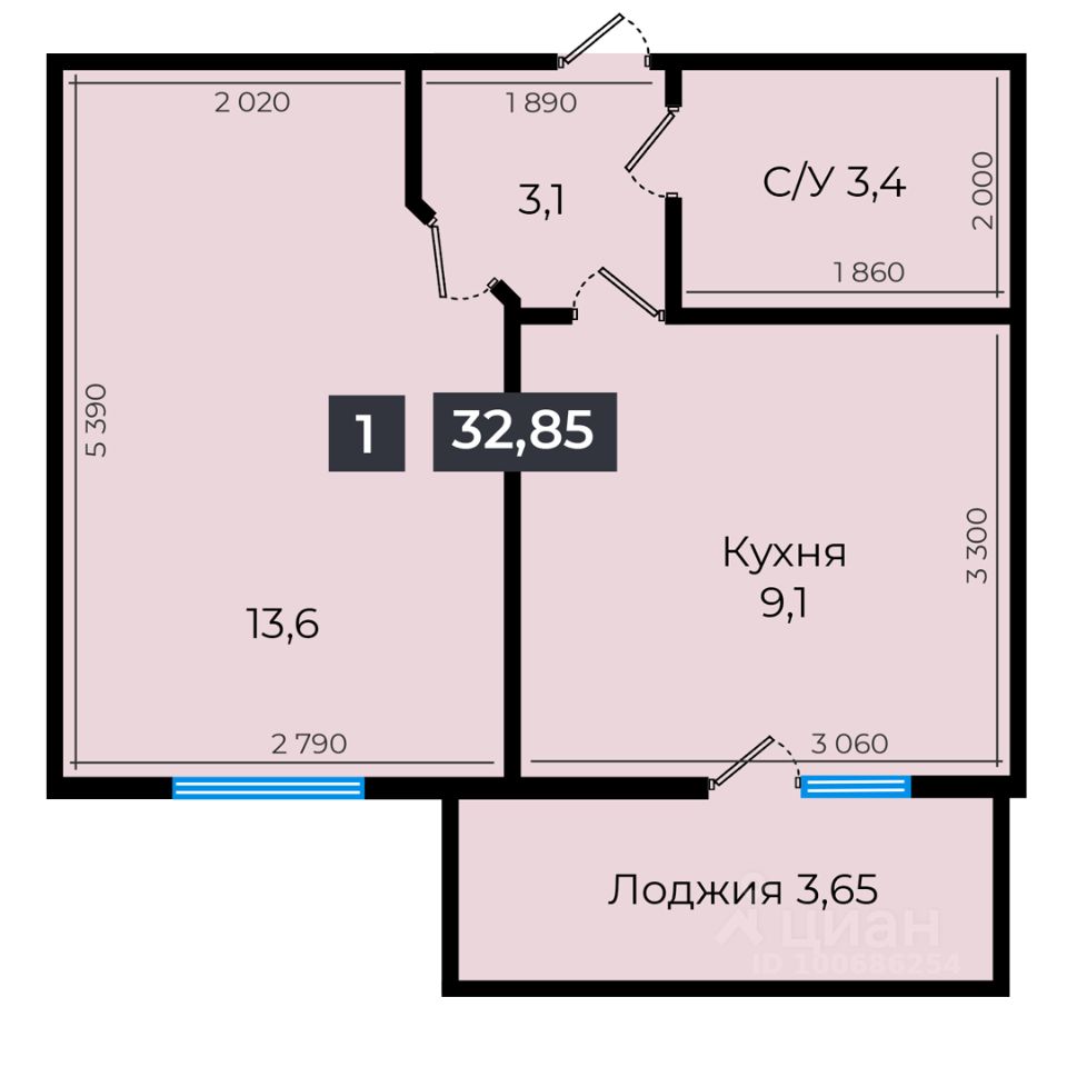 Общая площадь32,65 м²