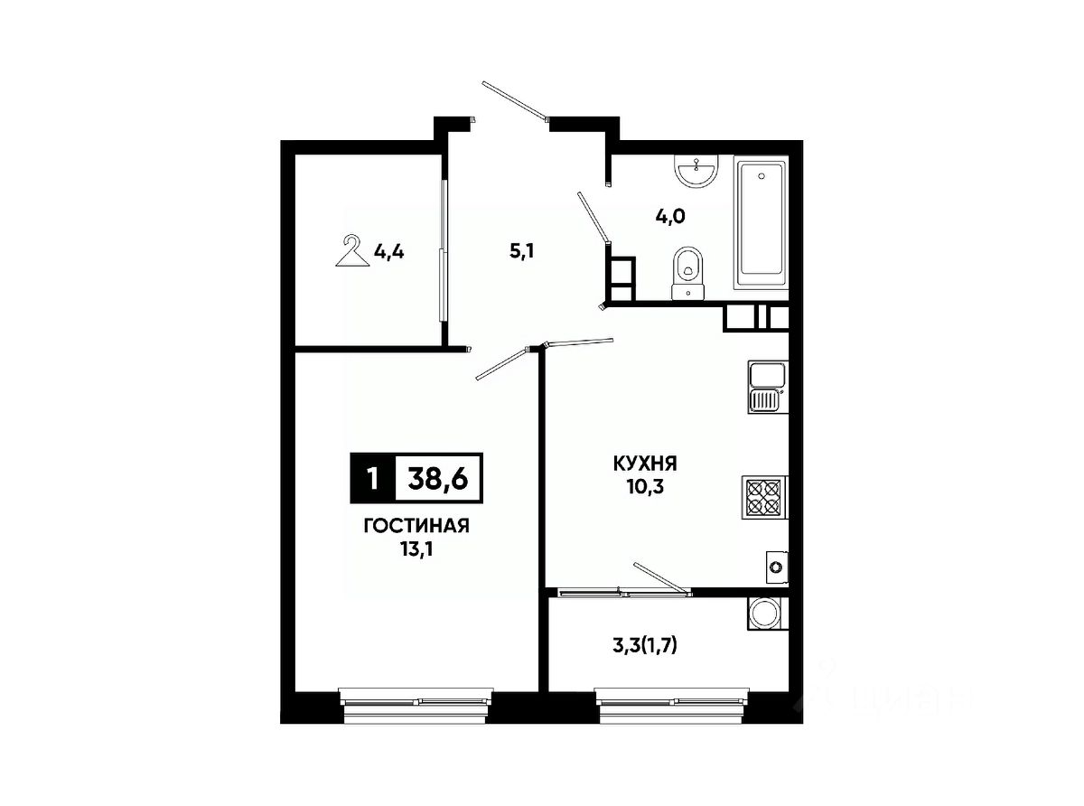 Общая площадь38,6 м²