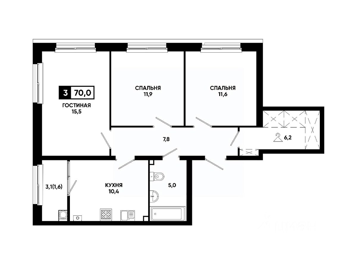 — 3-комнатная квартира с функциональными и удобными комнатами для вашей семьи;